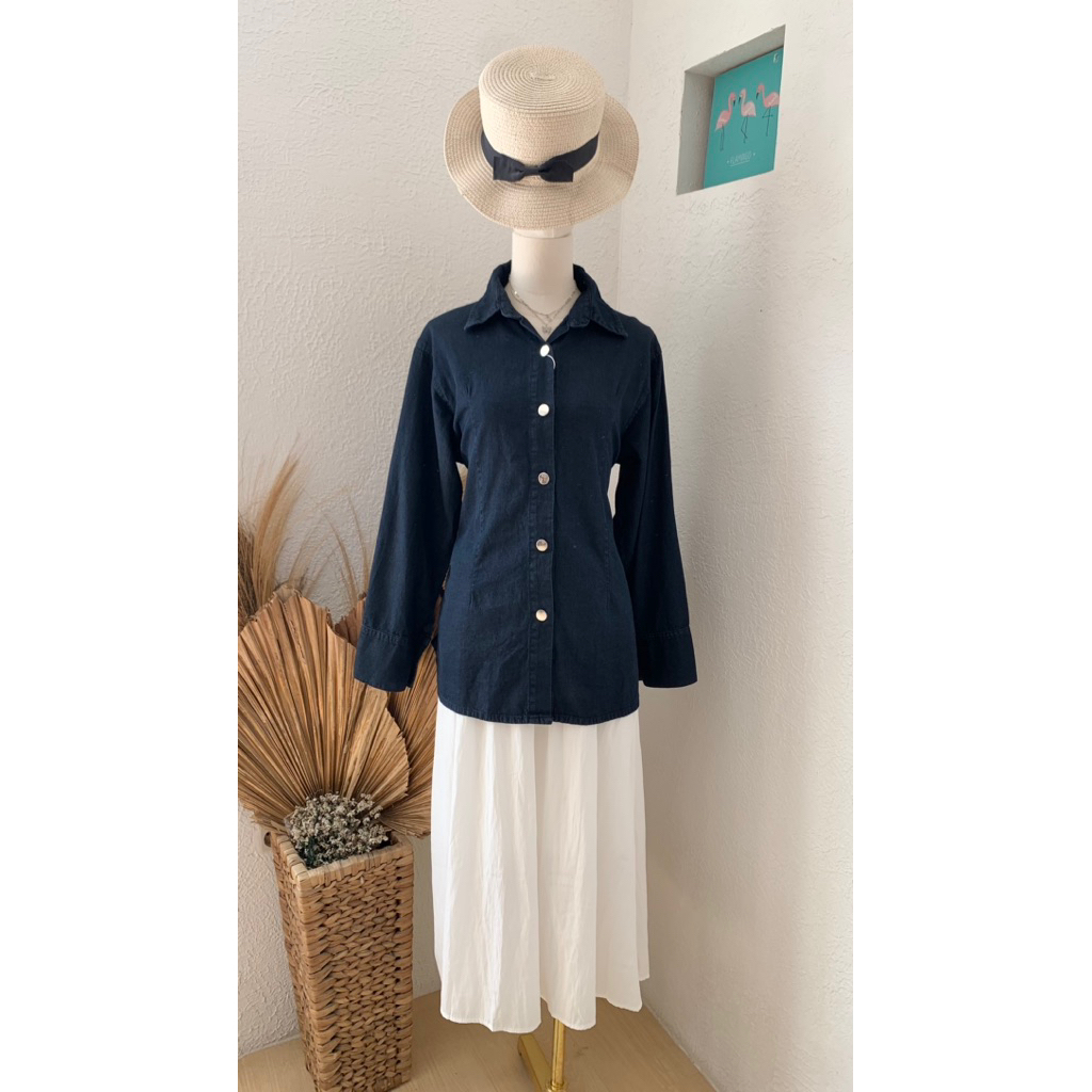 Frida Kemeja Slim Fitted Shirt | Kemeja Kerja Wanita | Casual Office | Kemeja Denim Slim Fit Body Belakang Tali | Kemeja