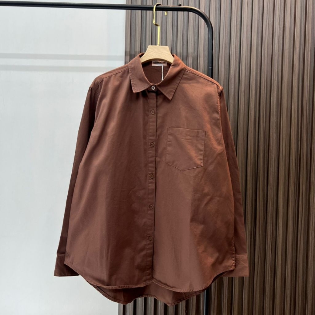 Kemeja Kantong Polos Wanita Casual Bahan Katun Premium Bkk Ld118 Panjang Baju 70/75Cm
