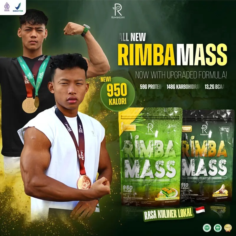 (PROMO) RIMBA MASS Rimbamass Gainer 2 LBS 900gr BPOM HALAL SUSU GYM PENGGEMUK PENAMBAH BERAT BADAN OTOT
