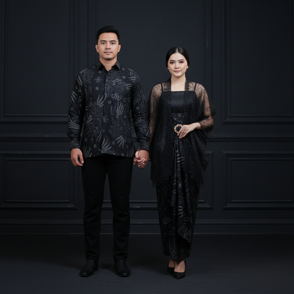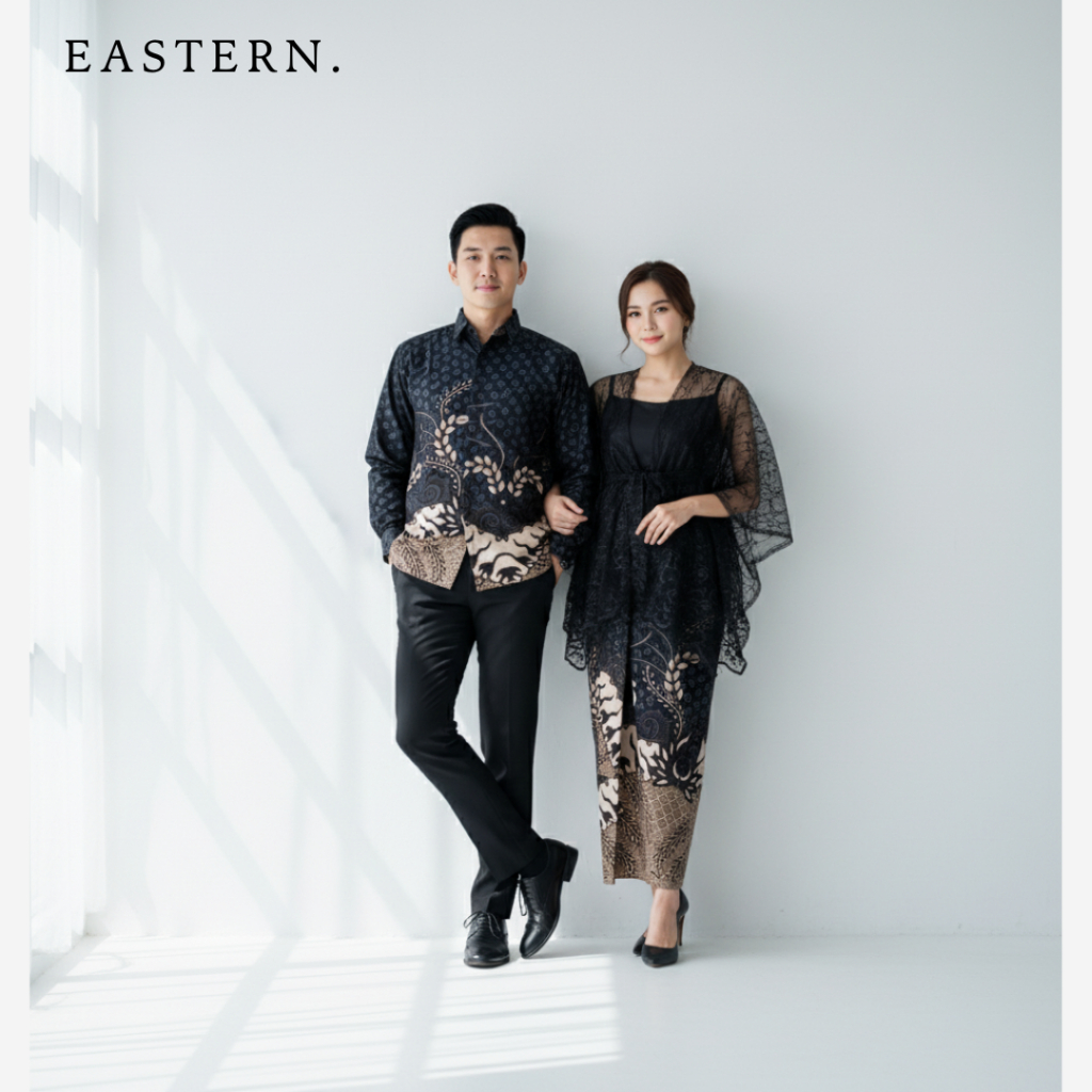 (Kebaya & Kemeja) Set Kebaya Couple Pasangan Brukat Tile Batik Modern Baju Kondangan Wanita Kekinian