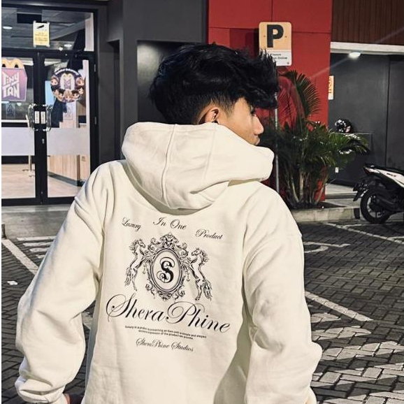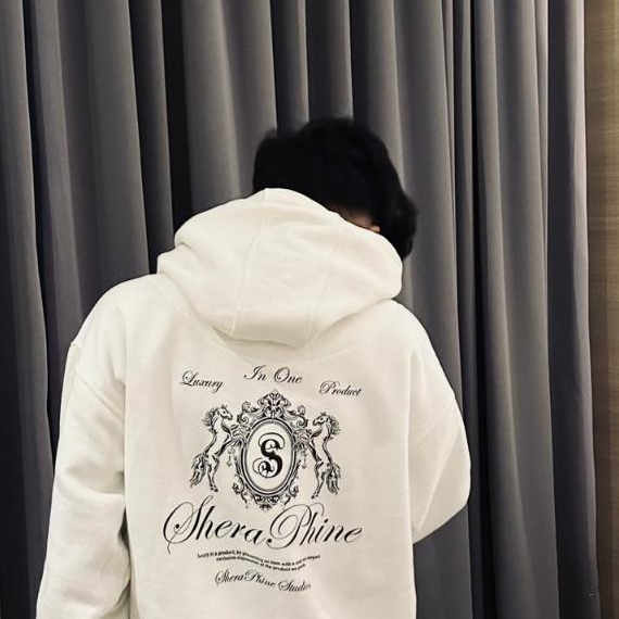 Sheraphine Studios - Hoodie Luxury High Quality Cotton Fleece 330Gsm Boxy Fitt Warna Putih & Hitam Sweater Pria Wanita U