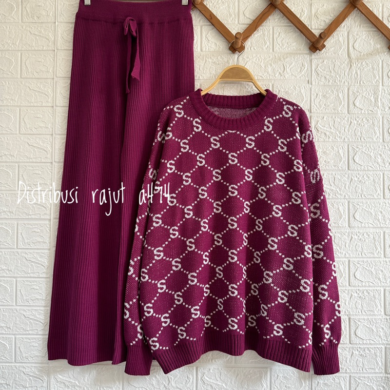 Oneset Sweater Bangkok Setelan Celana Kulot Rajut Wanita