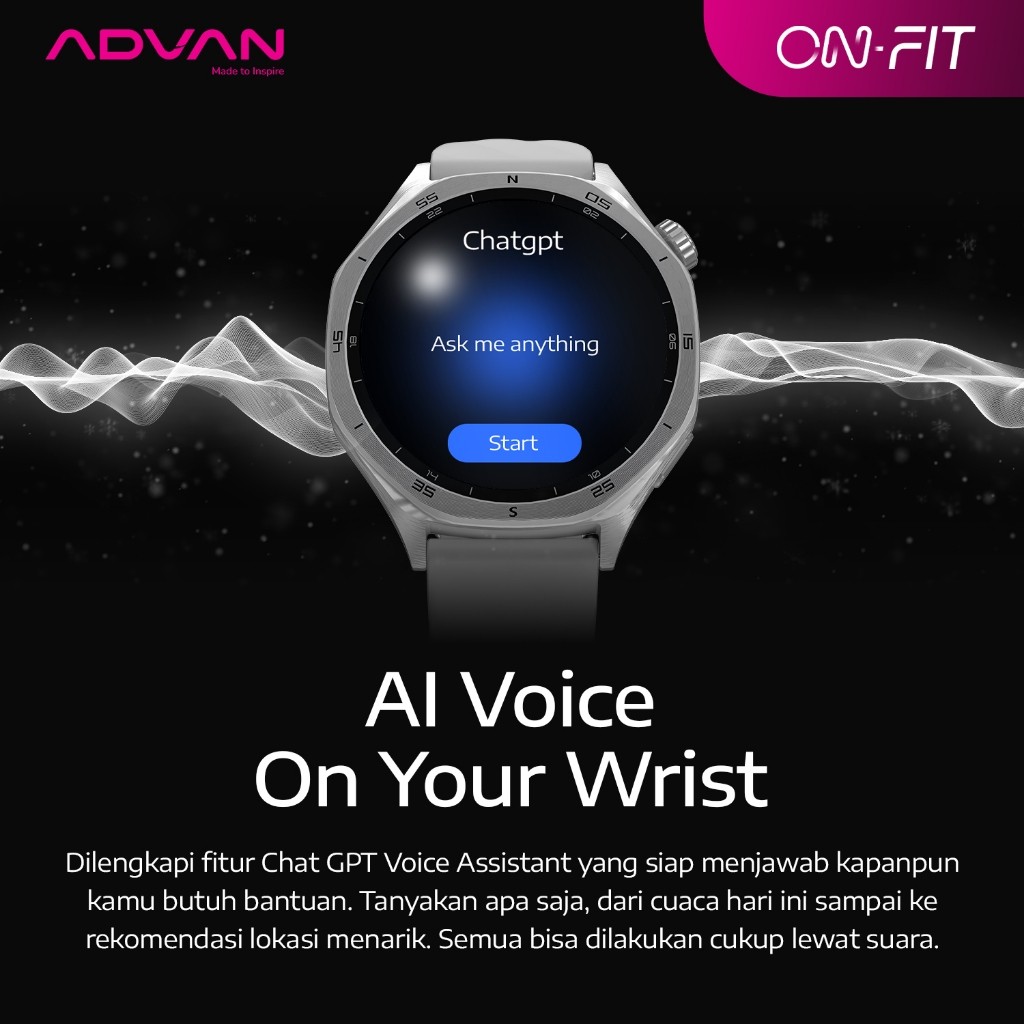 ADVAN Smartwatch On Fit | Jam Tangan Pintar 1.53" inch Display | AI Voice ChatGPT | Strava & Google Fit | 400mAh Battery