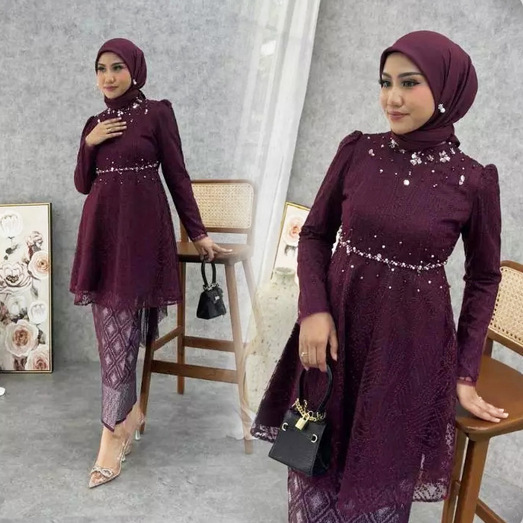 (New Arrival) Batik Couple Termurah - Setelan Kebaya Batik Sarah Rok Motif Songket Kebaya Wisuda Lamaran Kondangan