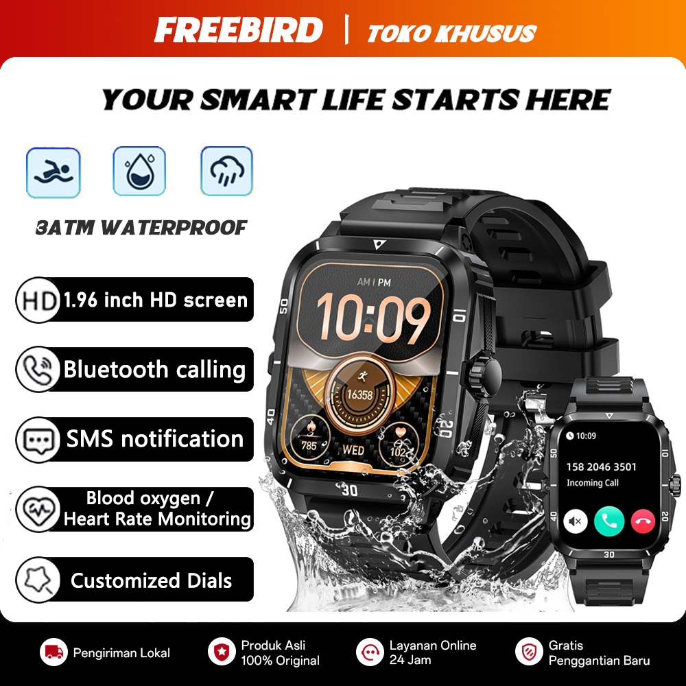 FreeBird Military Smart Watch with Bluetooth calling | Jam Tangan Pintar Pria with 3ATM Waterproof