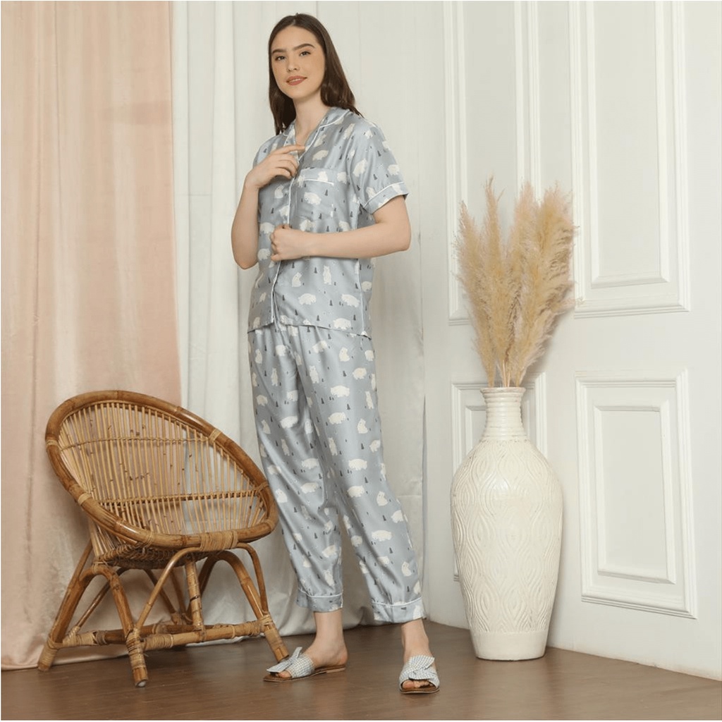 Piyama Fuzzy Grey Bahan Sutra Organic