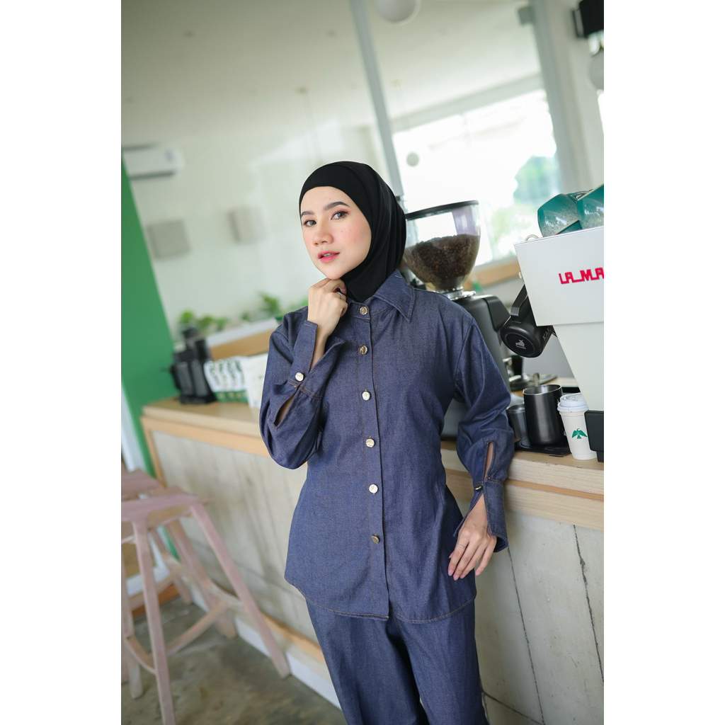 Alesha Denim Oneset Aurora By Hawa Hijab -Oneset Jeans -Oneset Jeans Wanita