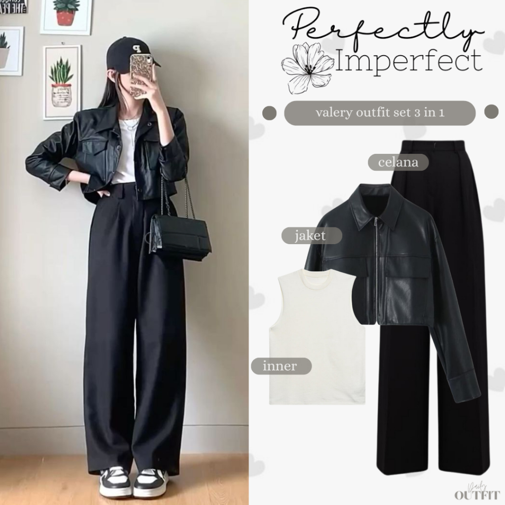 Outfit Korean Style Wanita Kekinian ( Jaket + Inner + Celana Kulot ) One Set Ootd Casual - Valery