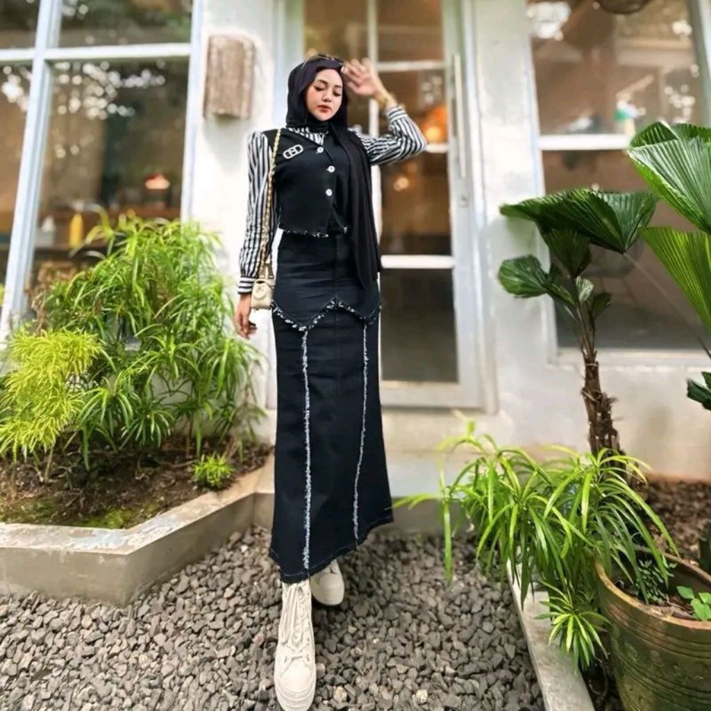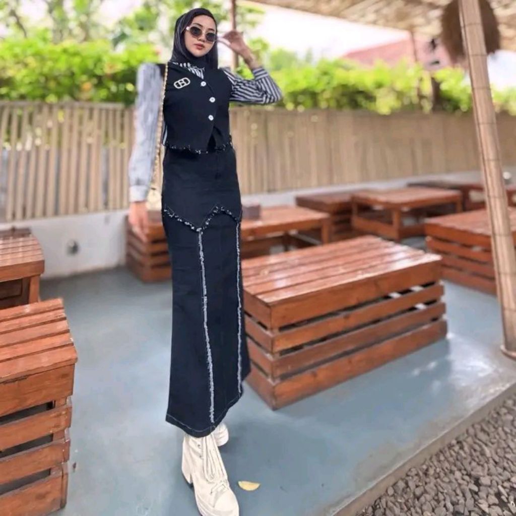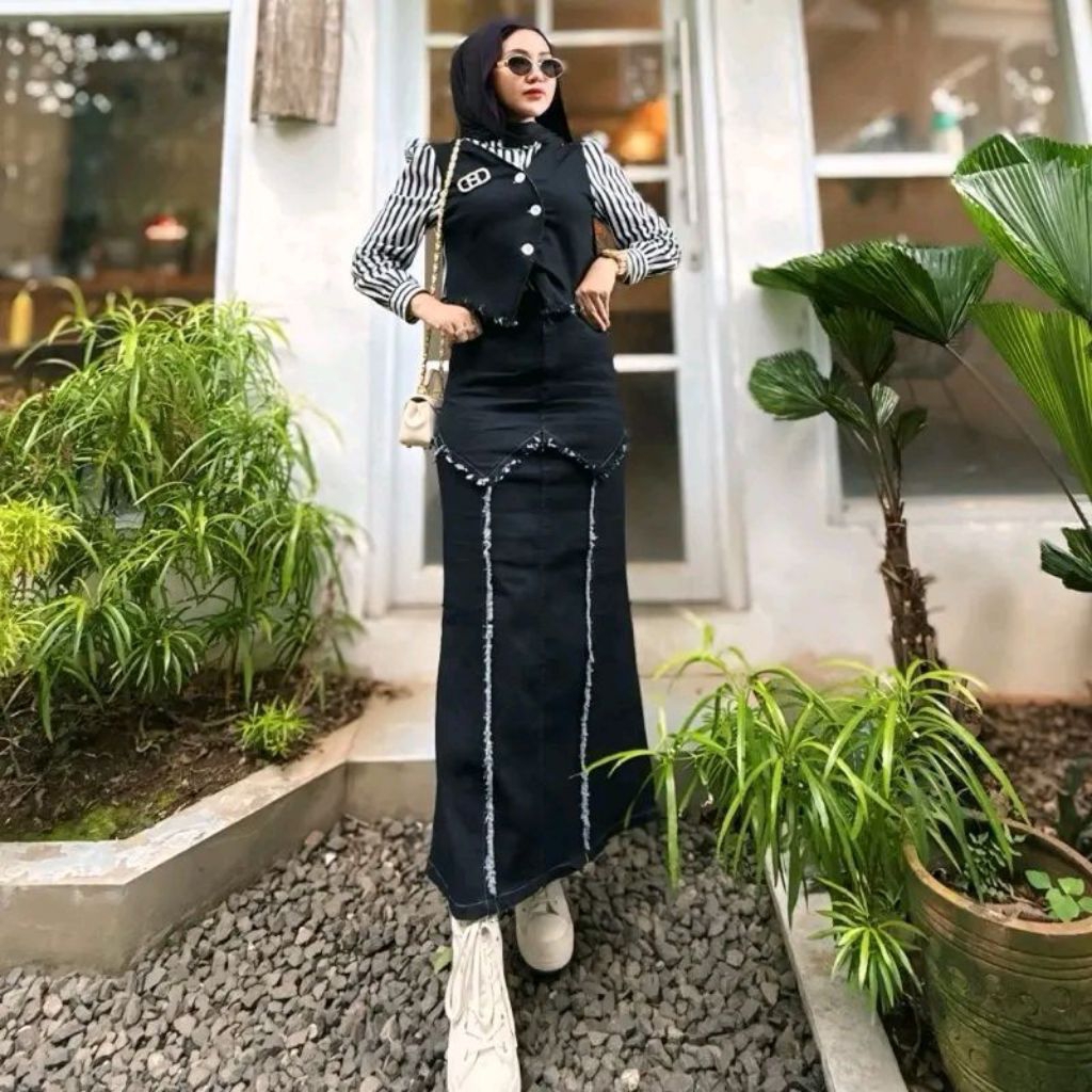 Oneset Jeans Rok Naomi Kekinian Warna Warni Trendy