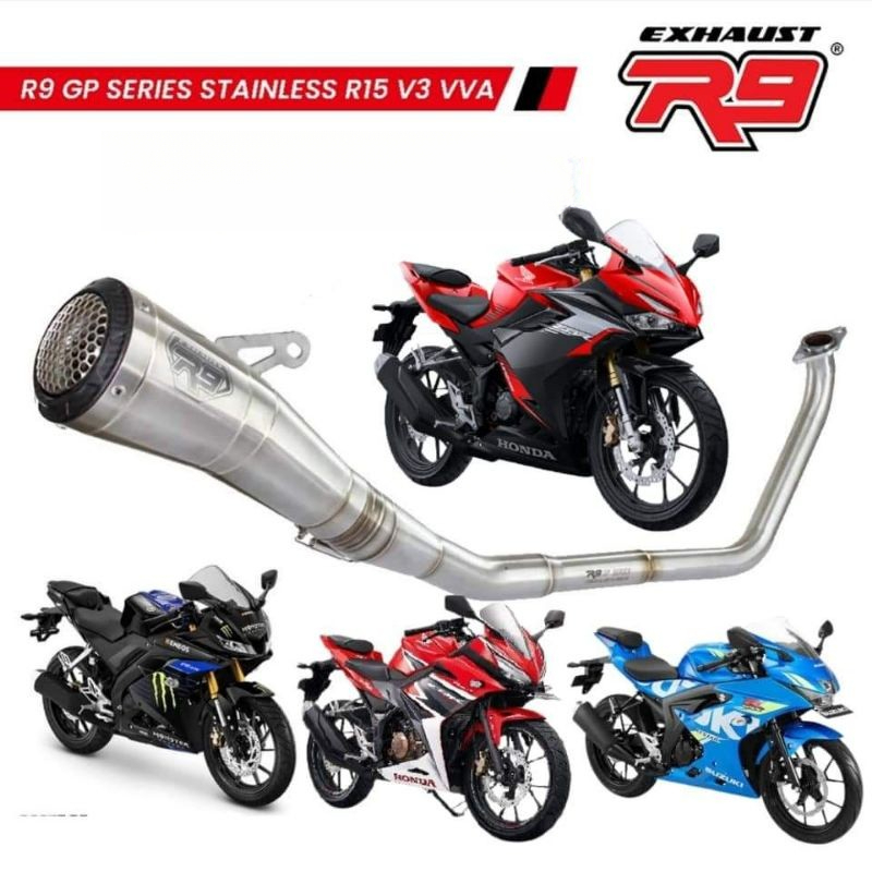 Knalpot R9 Gp Series Cbr150r New/R15 New/R15 Old/Vixion/Gsx150/Satria Fu/Cb 150r New/Cb 150x 150s/Mx King/Sonic/Ninja 25