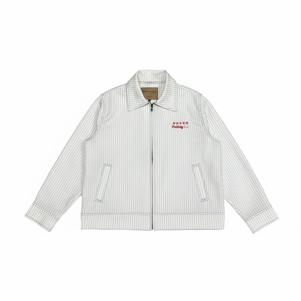 Puddinglane Work Jacket Stripe Boxy Unisex Pria Wanita Lengan Panjang Laetta