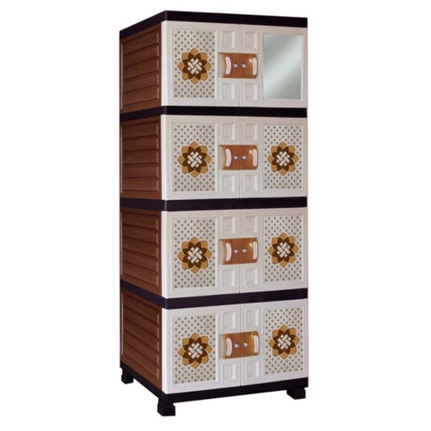 Lemari pakaian lemari plastik jumbo motif rotan/batik susun 4 dan 3 +cermin