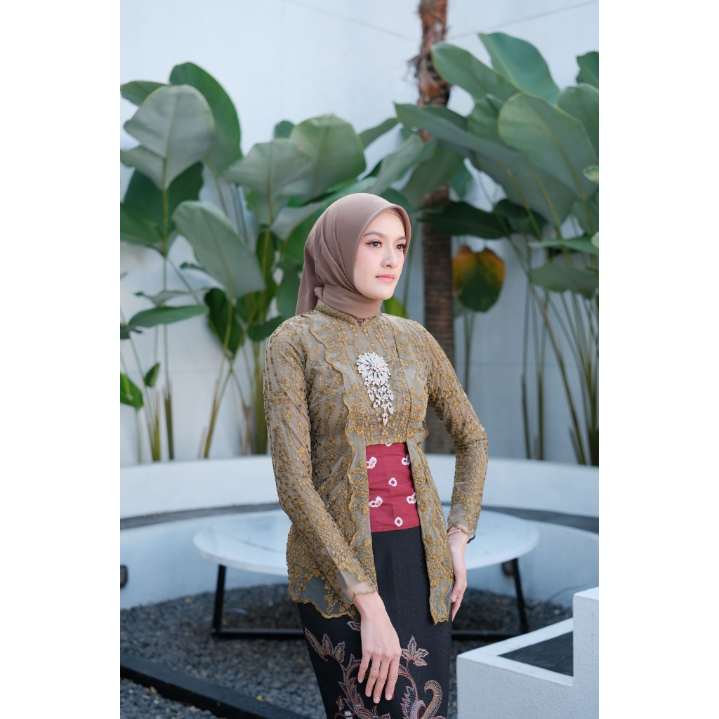 Akita-Ayu green olive) Set Couple Kebaya Kutubaru Wanita & Kemeja Batik Pria. Kebaya Blouse Wisuda kebaya Kondangan Kebaya Lamaran Bahan Lace Premium