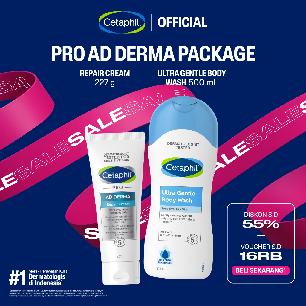 Cetaphil Pro Ad Derma Repair Cream 227g + Ultra Gentle Body Wash 500