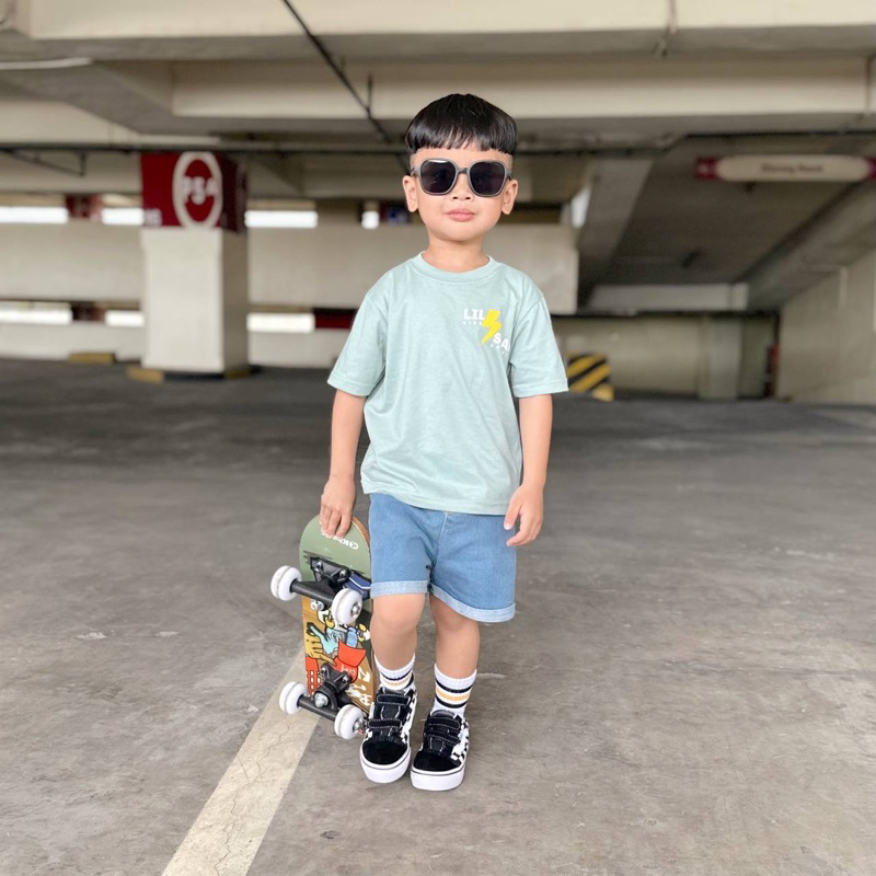 LittleShanka - SETELAN KAOS DISTRO CELANA PENDEK DENIM JEANS ANAK - Oslo Set