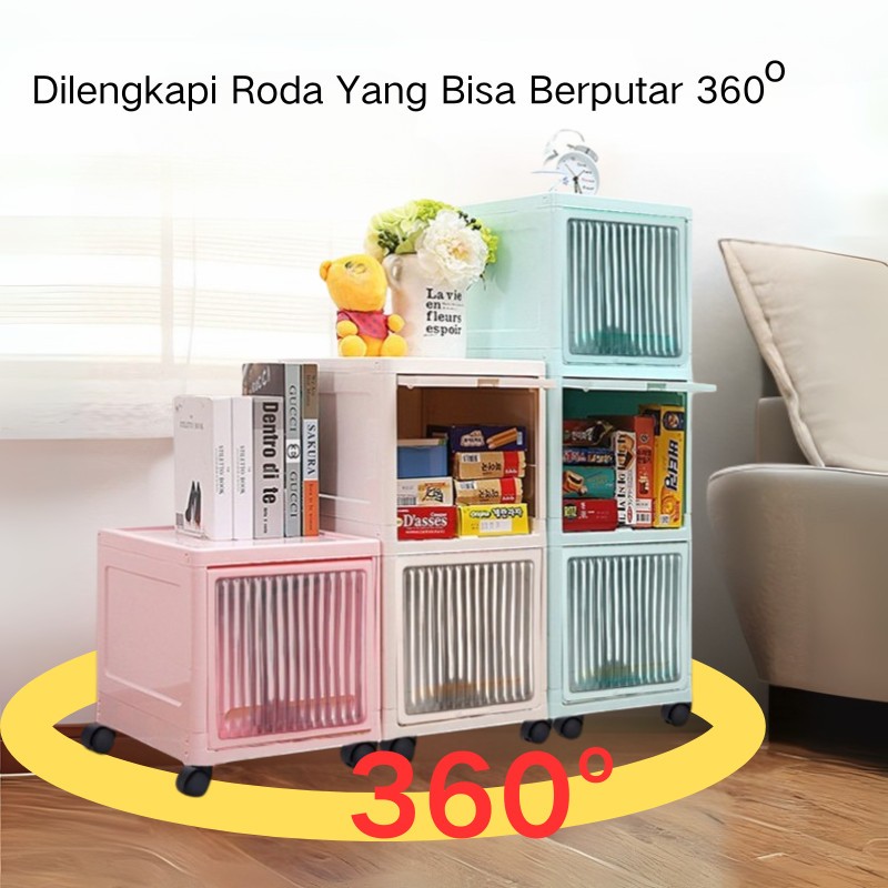 Lemari Susun Plastik Pintu Transparan Geser Atas Roda Lemari Pakaian DLL