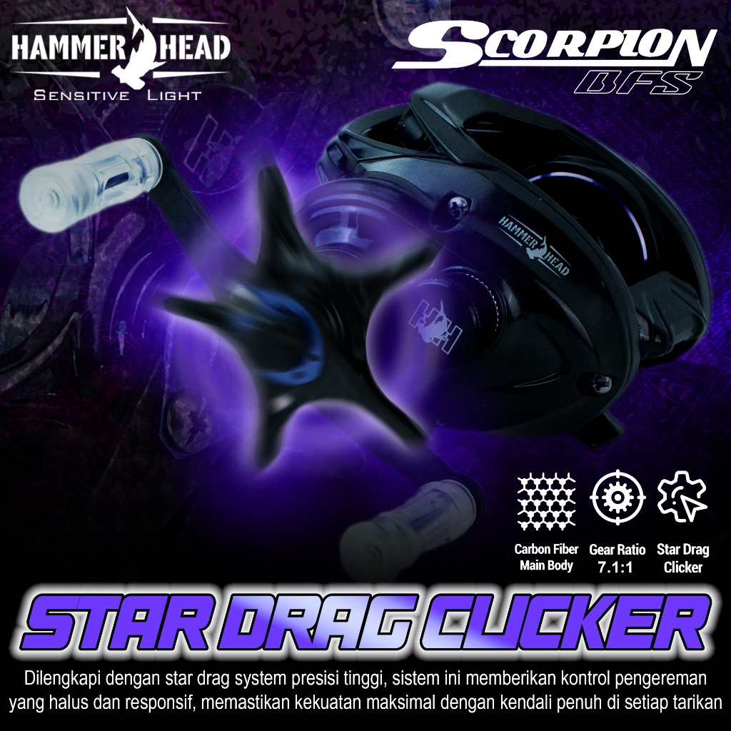 HAMMER HEAD Reel Baitcasting SCORPION BFS 6+1BB Handle Kiri Carbon Body Super Ringan Reel Pancing Baitfinesse system