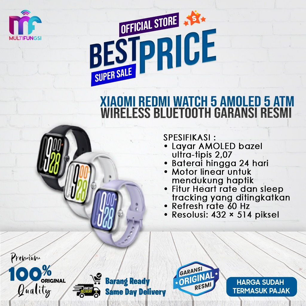 Xiaomi Redmi Watch 5 Amoled 5 ATM Wireless Bluetooth Garansi Resmi