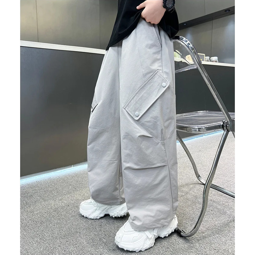 Celana Kargo Ukuran Besar untuk Anak Laki-laki Musim Semi Musim Gugur 2025 Celana Kasual Kaki Lurus Baru Celana Anak-anak Keren Trendi