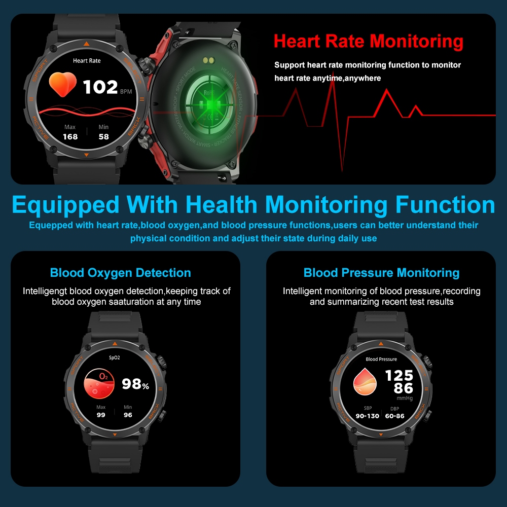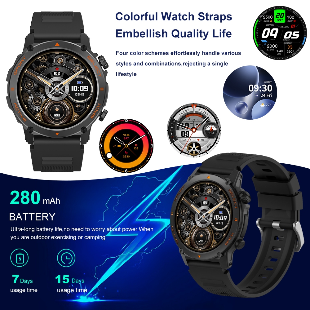 Simbojoy Smartwatch Pria AMOLED Screen Original Pace IPS Screen 46mm Metal Smart Watch Heart&Rate Monitoring Bluetooth C