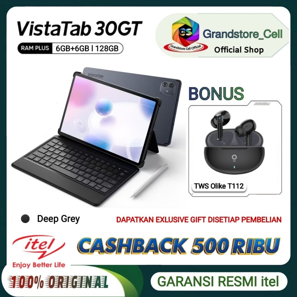 ITEL Vista Tab 30 GT RAM 6/128GB - 11" inc IPS Full HD, [FREE Keyboard + Stylus] GARANSI RESMI ITEL INDONESIA - VistaTab
