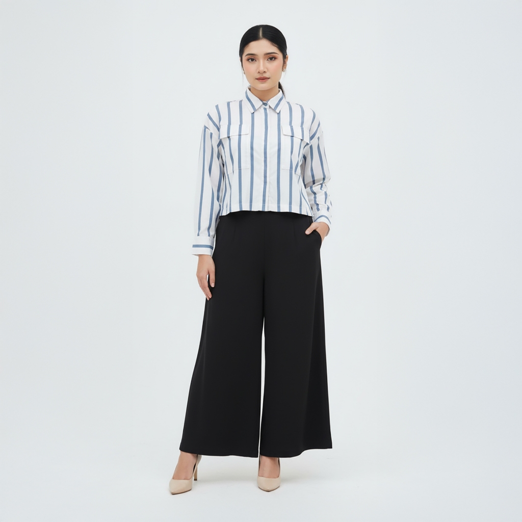Lynoe - Tasya Kemeja Salur Poplin - Kemeja Kantor Wanita - Kemeja Salur Wanita
