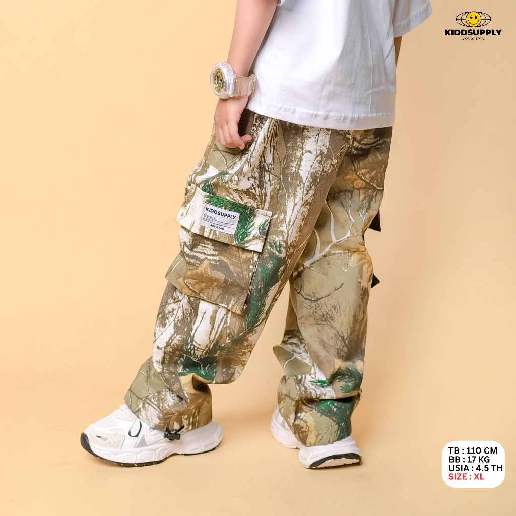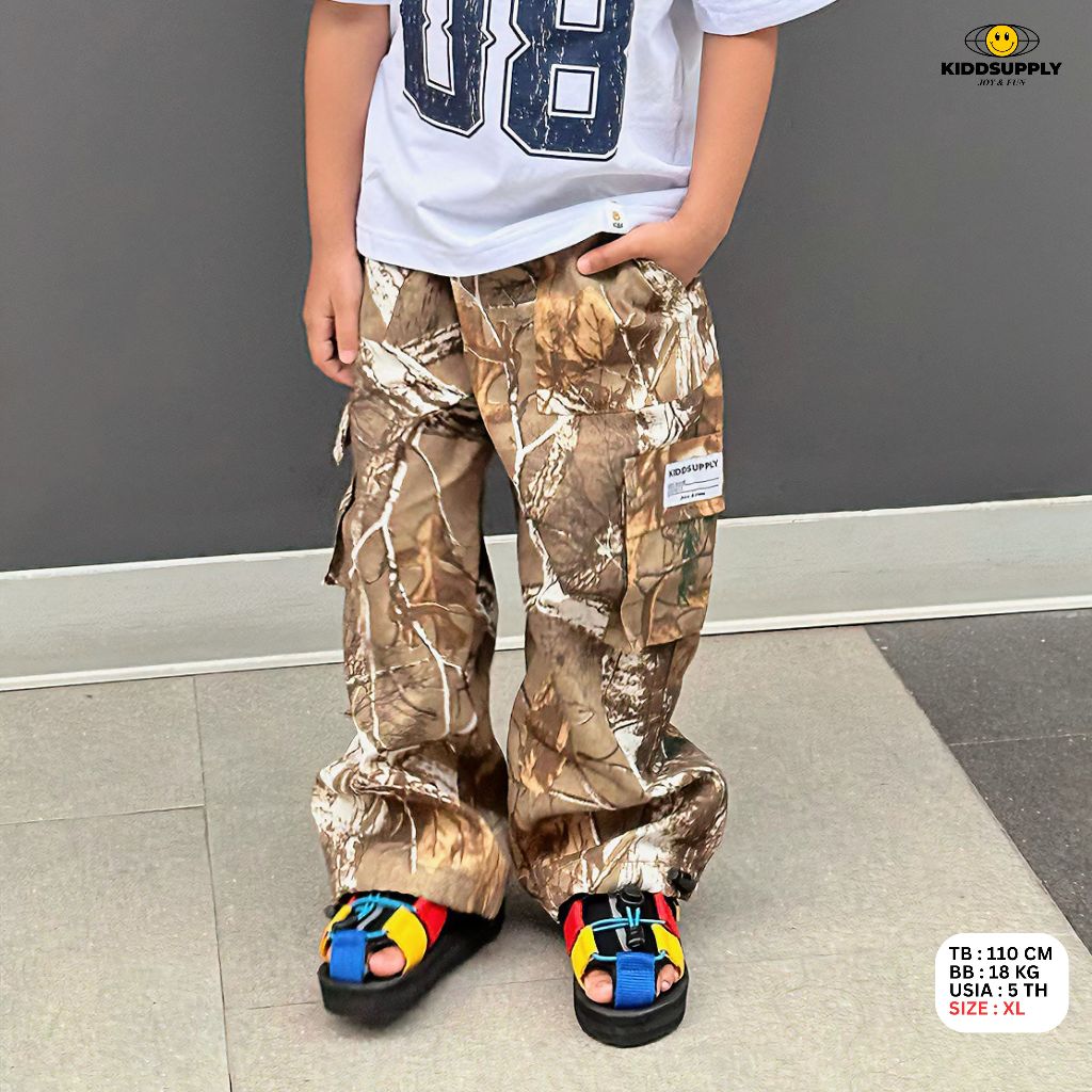 KiddSupply Celana Cargo Panjang Camo Brown | Celana Baggy Loreng Anak Unisex | KD-LPC-CMO