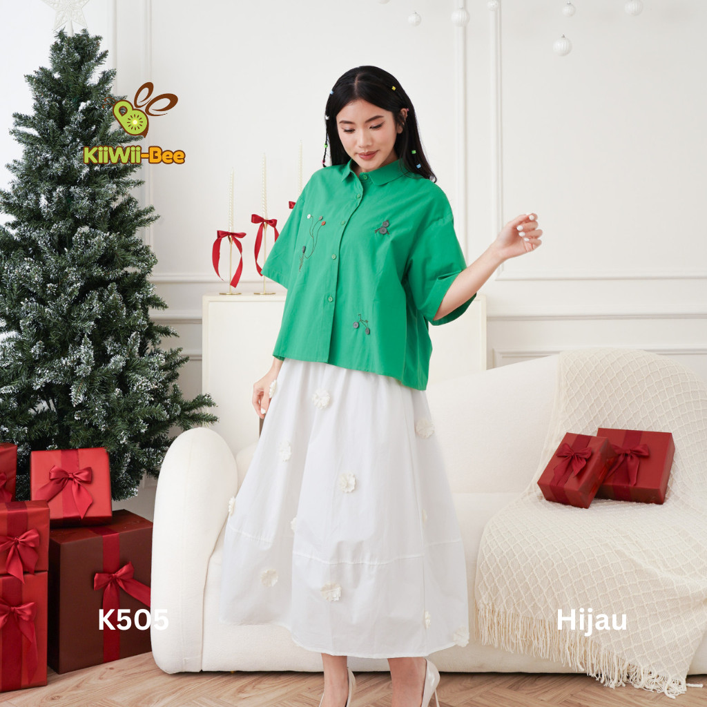 Kemeja Zevina Kiiwii K505 Katun Oversize Bordir