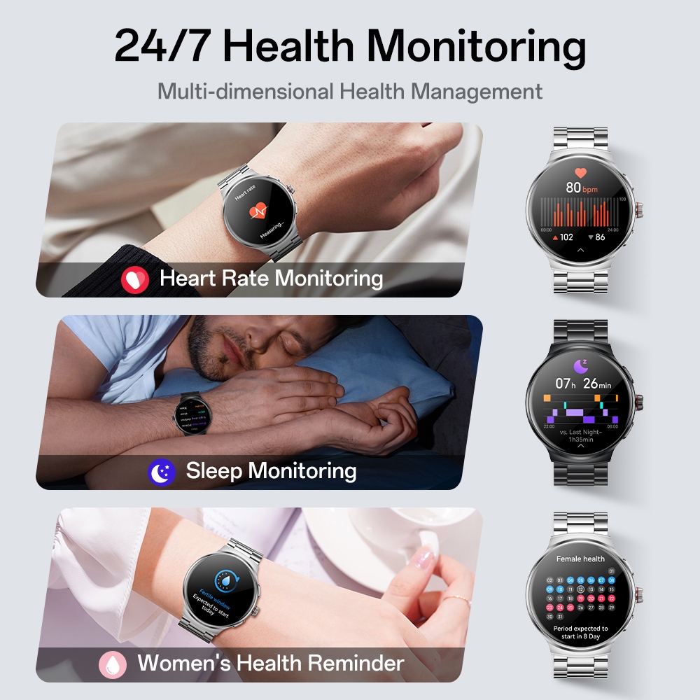 Aolon Prime 3 Jam Smartwatch 1.43-inci Amoled AOD Cover Lock Metal Case Bluetooth Call 100+ Sports