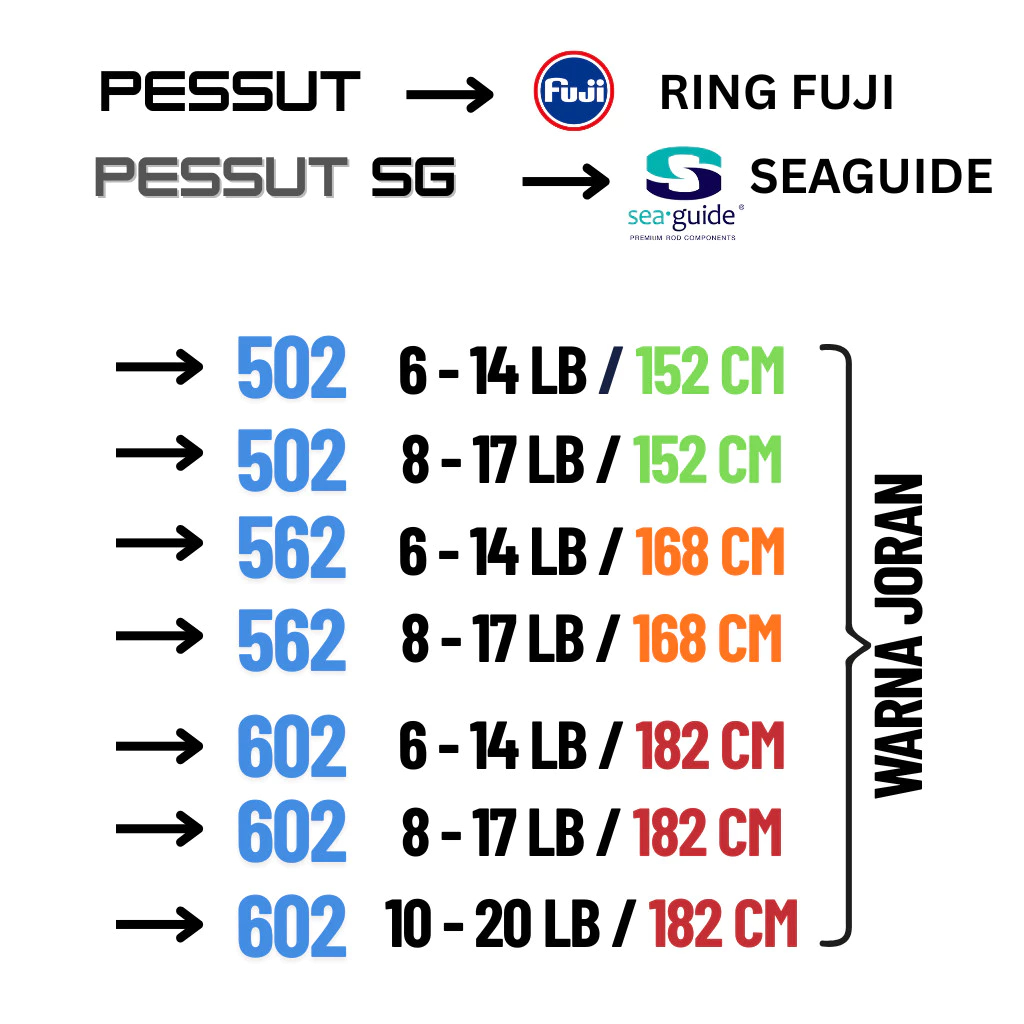 SG 502 6-14lb Hijau, SG 562 6-14lb Orange, SG 562 8-17lb Orange, SG 602 6-14lb Merah, SG 602 8-17lb Merah, SG 602 10-20lb Merah