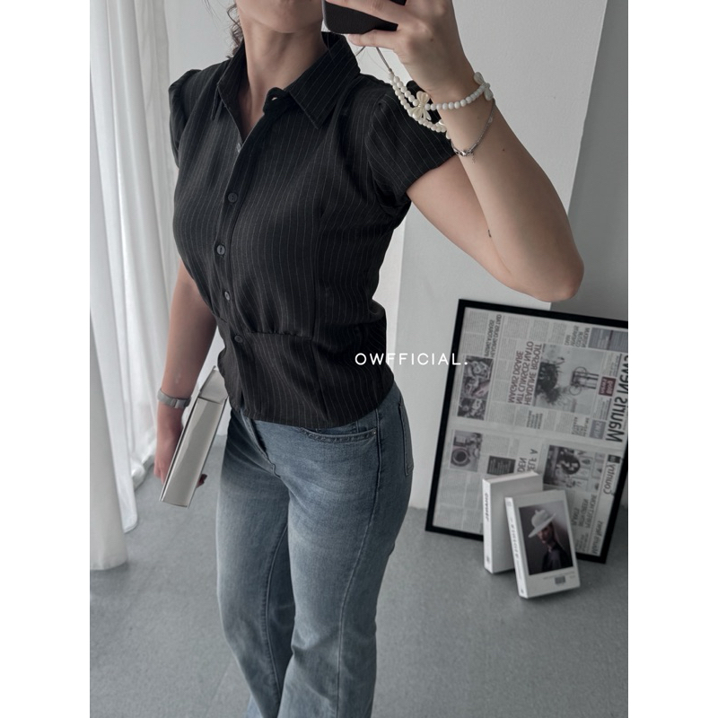 Coco Shirt | Basic Fitted Shirt Kemeja Polos Wanita Kemeja Kantor Polos Kemeja Salur Lengan Pendek Petite