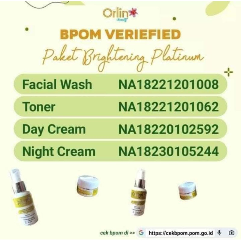 Paket Brightening Platinum + Serum Rejuvenation Orlin Beauty Skincare Mencerahkan Wajah Kulit Glowing Anti Kusam Mengeci