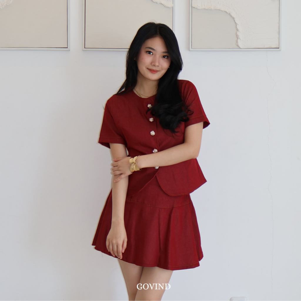 Govind.Idn - Merlyn Set / Setelan Rok Wanita / One Set Lengan Pendek Wanita