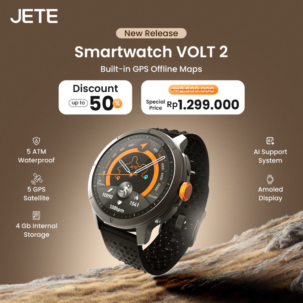 Smartwatch JETE VOLT 2 AMOLED 1.6 Inch Screen Display Jam Tangan AI Running 5 ATM Waterproof Watch 4GB Smart Watch With