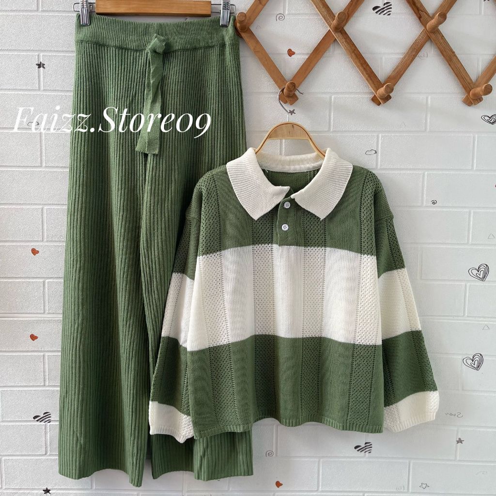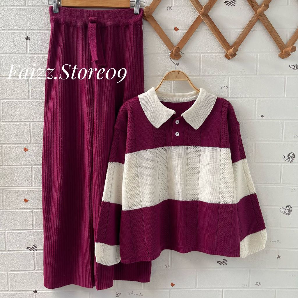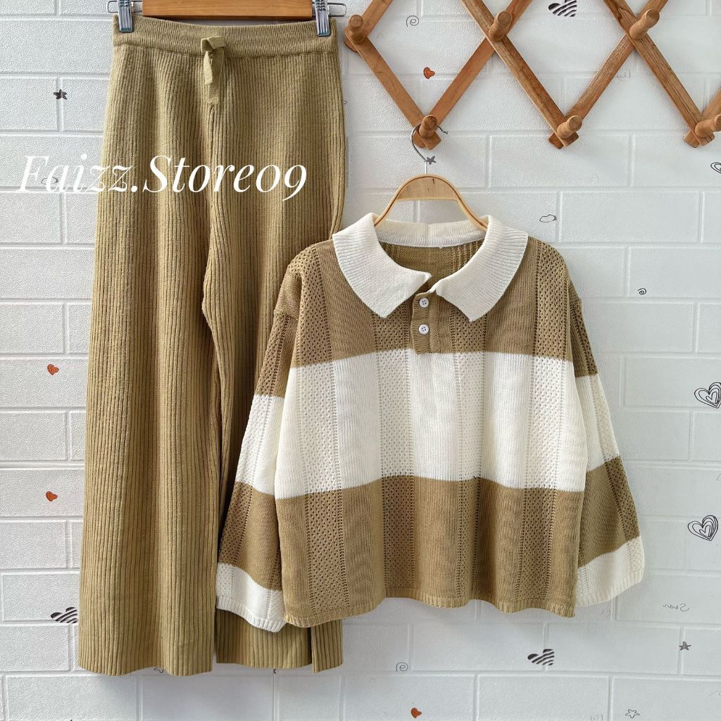 Oneset Naomi Setelan Celana Kulot Rajut Wanita