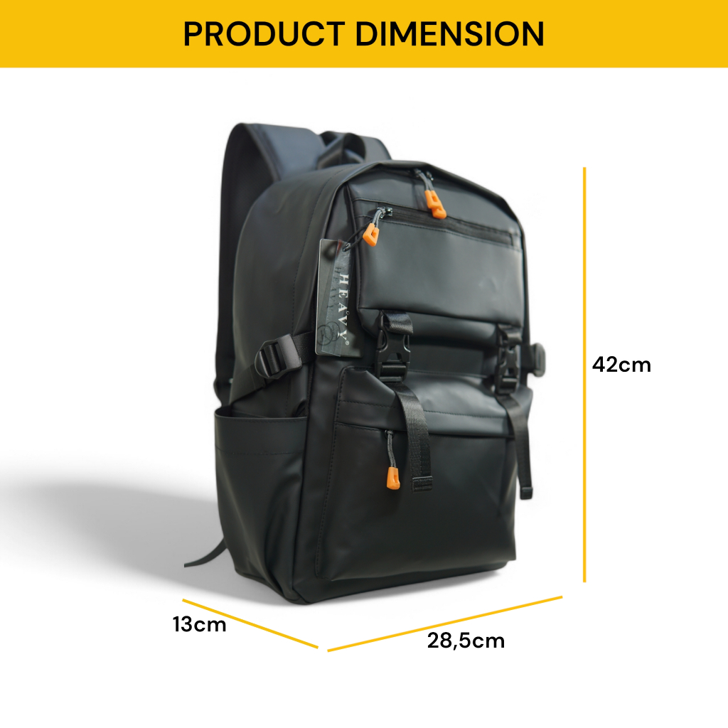 Tas Heavy Backpack Pria Anti Air Hitam | Tas Ransel Laptop | Tas Punggung Sekolah | Tas Kerja Kantor