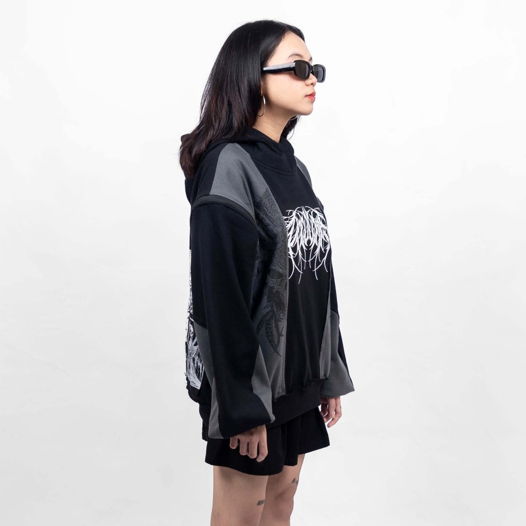 Grdt - Mumun Two Tone Hoodie Oversize Black Grey