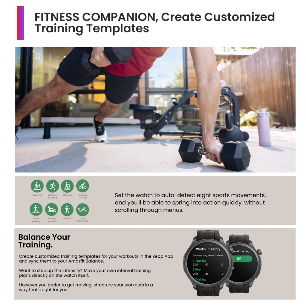 Amazfit Official Balance 46mm SmartWatch Bluetooth Phone Call AI Fitness Coach Sleep &Health Tracker With Body Compositi