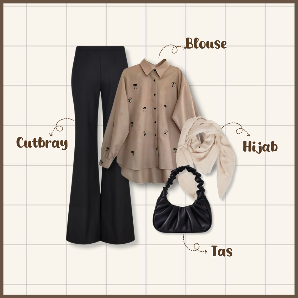 4 In One Set Korean Style ( Tas+Bella Square+Blouse+Celana Cutbray ) Setelan Wanita Kekinian - Set Ab395