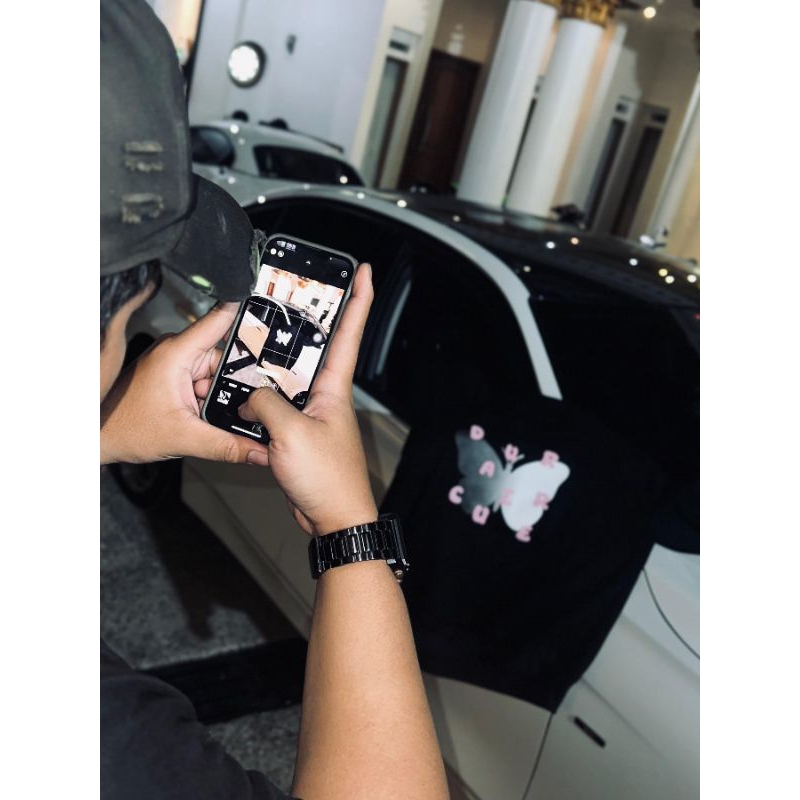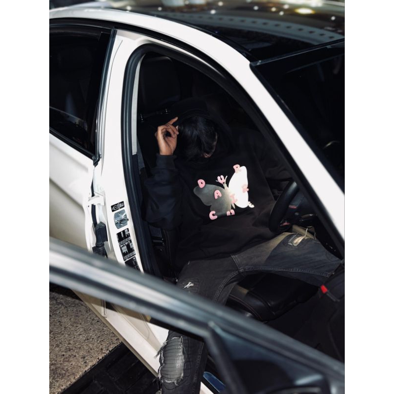 Hoodie Boxy Oversize Butterfly - Black Cotton Fleece