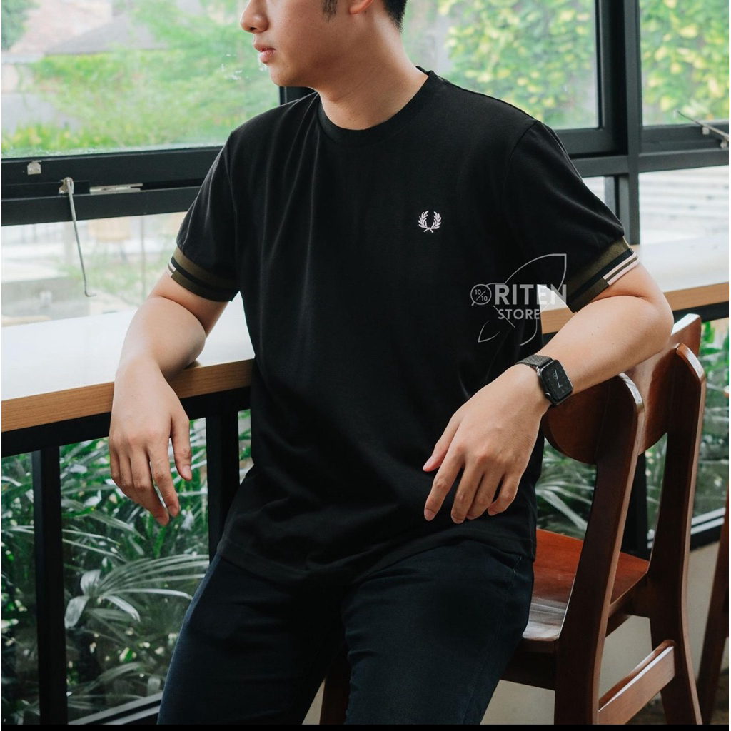 Fred Perry Abstract Cuff Tee Black Original / Baju Kaos Fredperry Authentic