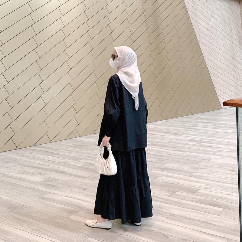 Caterine Set Rok 2In1 Fashion Muslim Bahan Katun Linen Jumbo Busui Setelan Oneset Wanita Kekinian