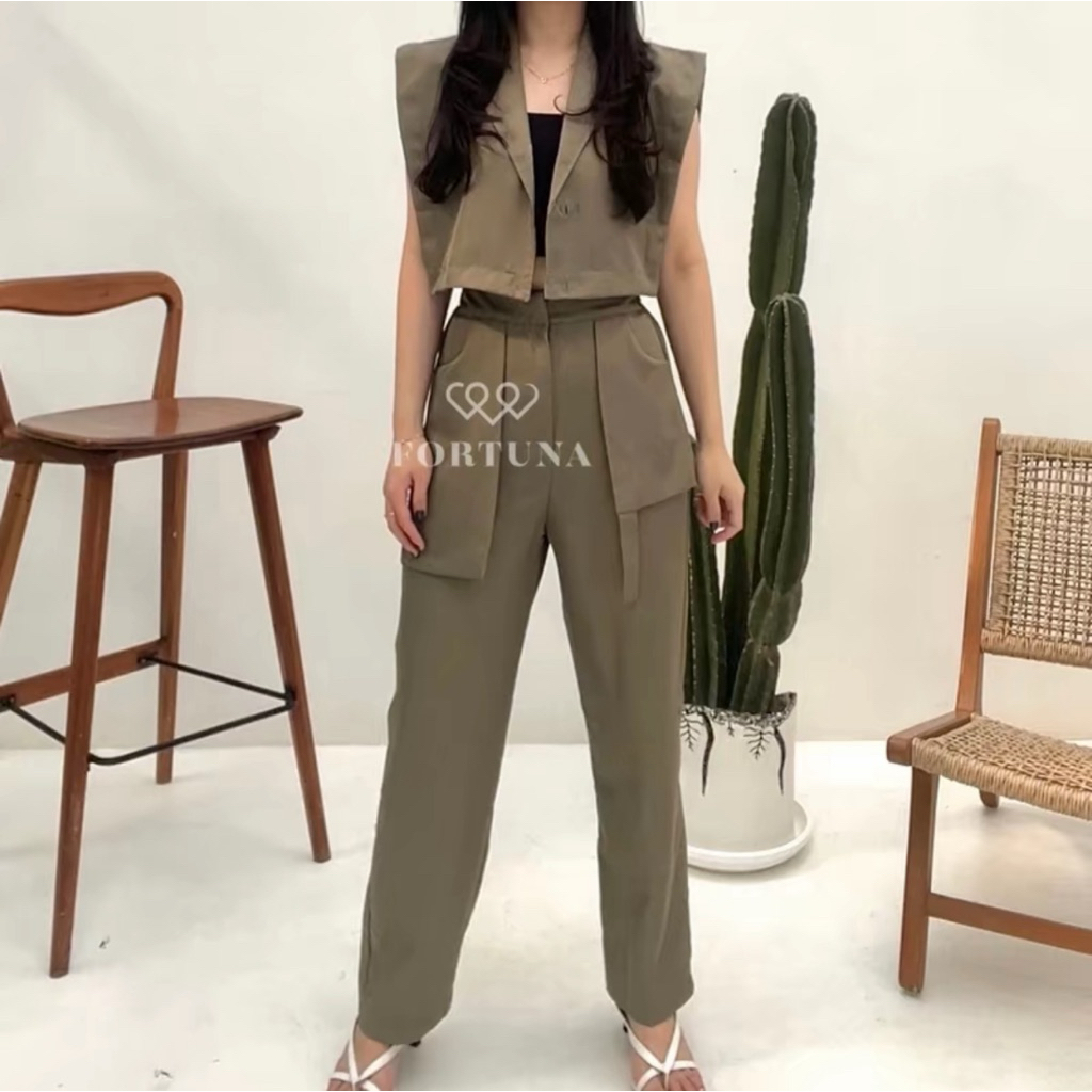 Emma Set Fortuna By Fortuna (Fuji Choice) Vest One Set Kekinian Atasan Dan Celana