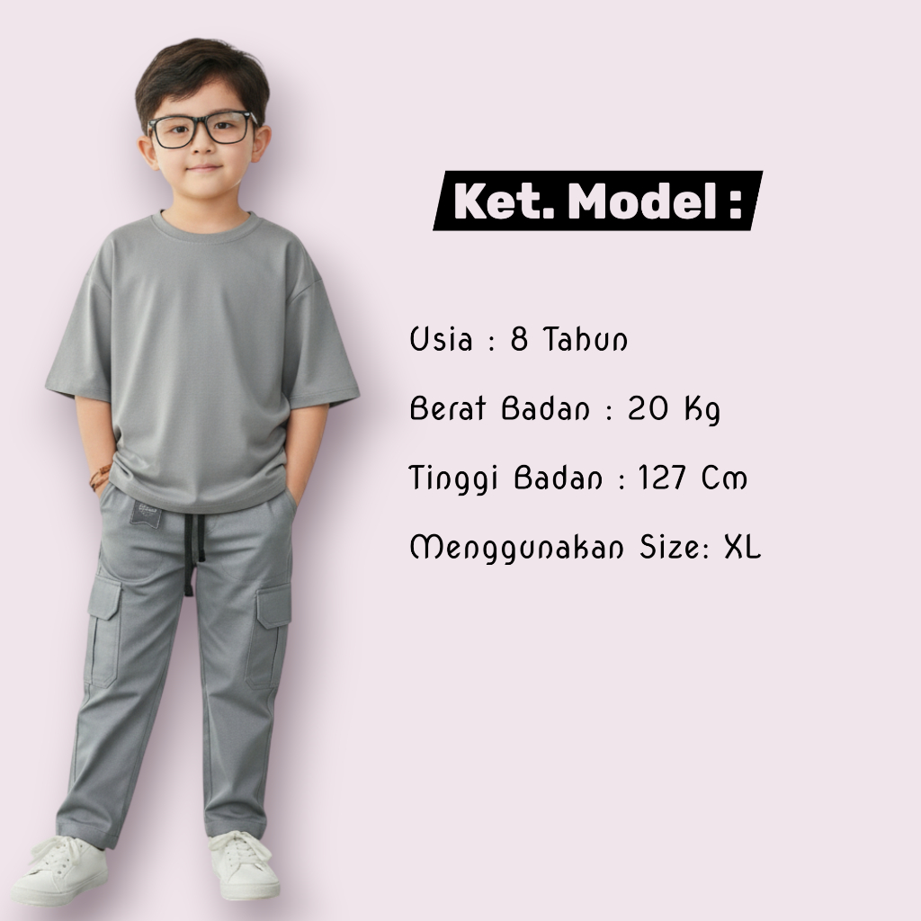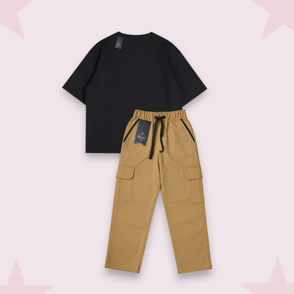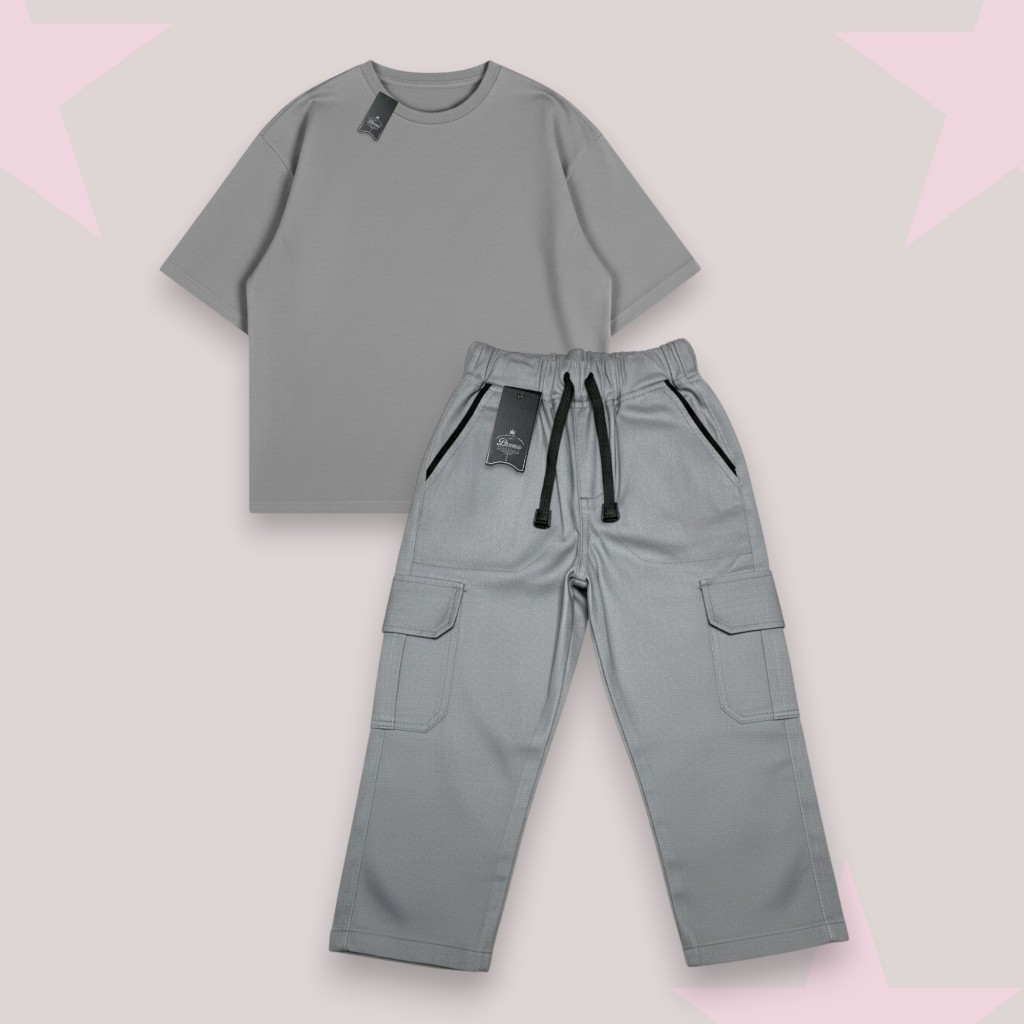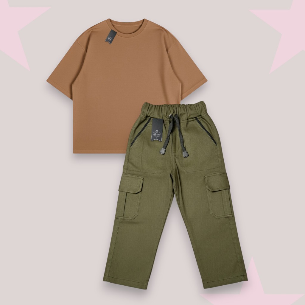 Setelan Anak Laki-Laki Kaos Oversize & Celana Cargo Panjang Usia 1-12 Tahun Set Cargo Panjang