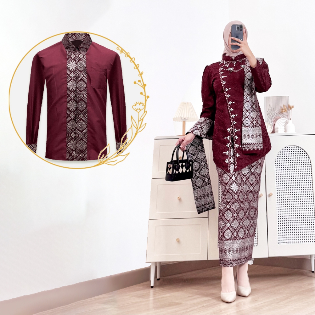 Batik Couple Termurah - Kebaya Couple Ayu Janggan Brokat Tulle Payet Setelan Rok Motif Songket Wisuda Kondangan Lamaran Jeng Yah