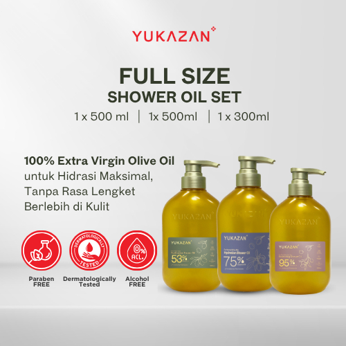 Yukazan Shower Oil 53 PERSEN 500 + 75 PERSEN 500 + 95 PERSEN 300 | Set Sabun Mandi | Body Wash | Kulit Normal dan Kering