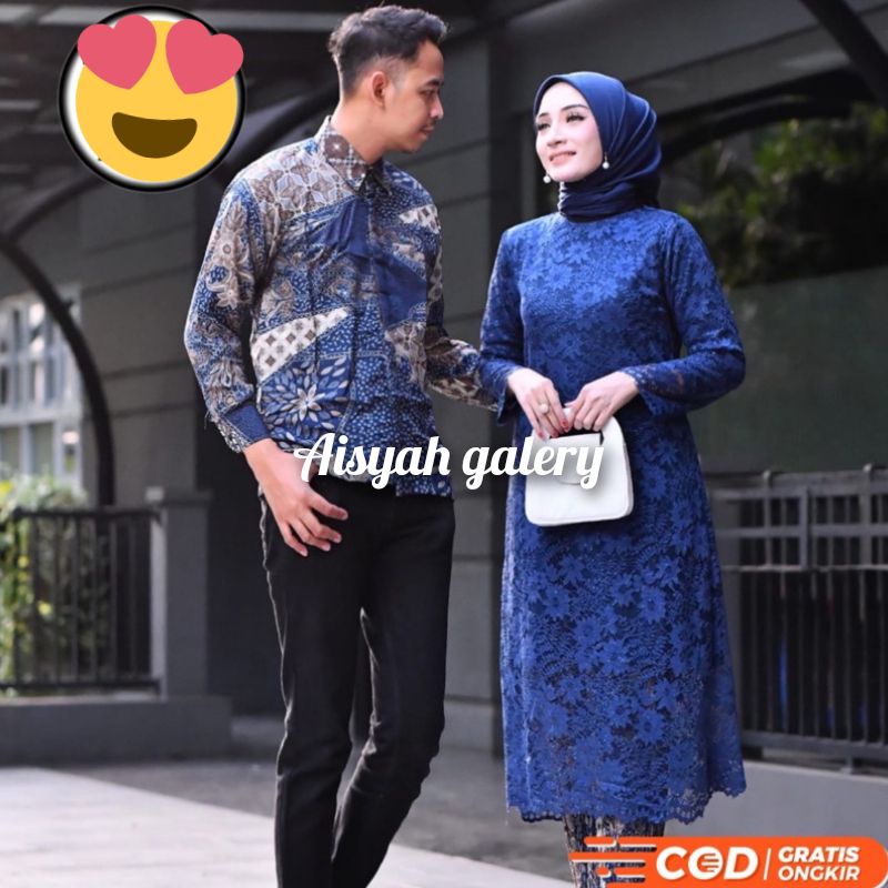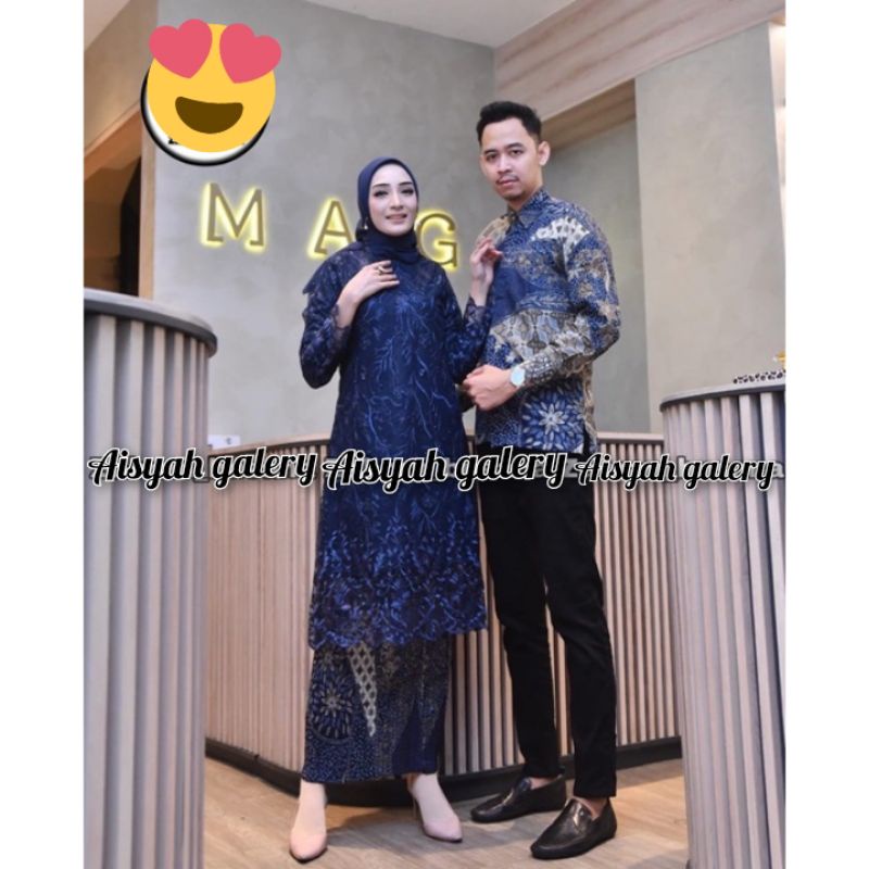 couple kebaya dan batik navy / kebaya modern / kebaya modern tunik / kebaya busui kucing depan / kemeja batik modern/ kemeja batik