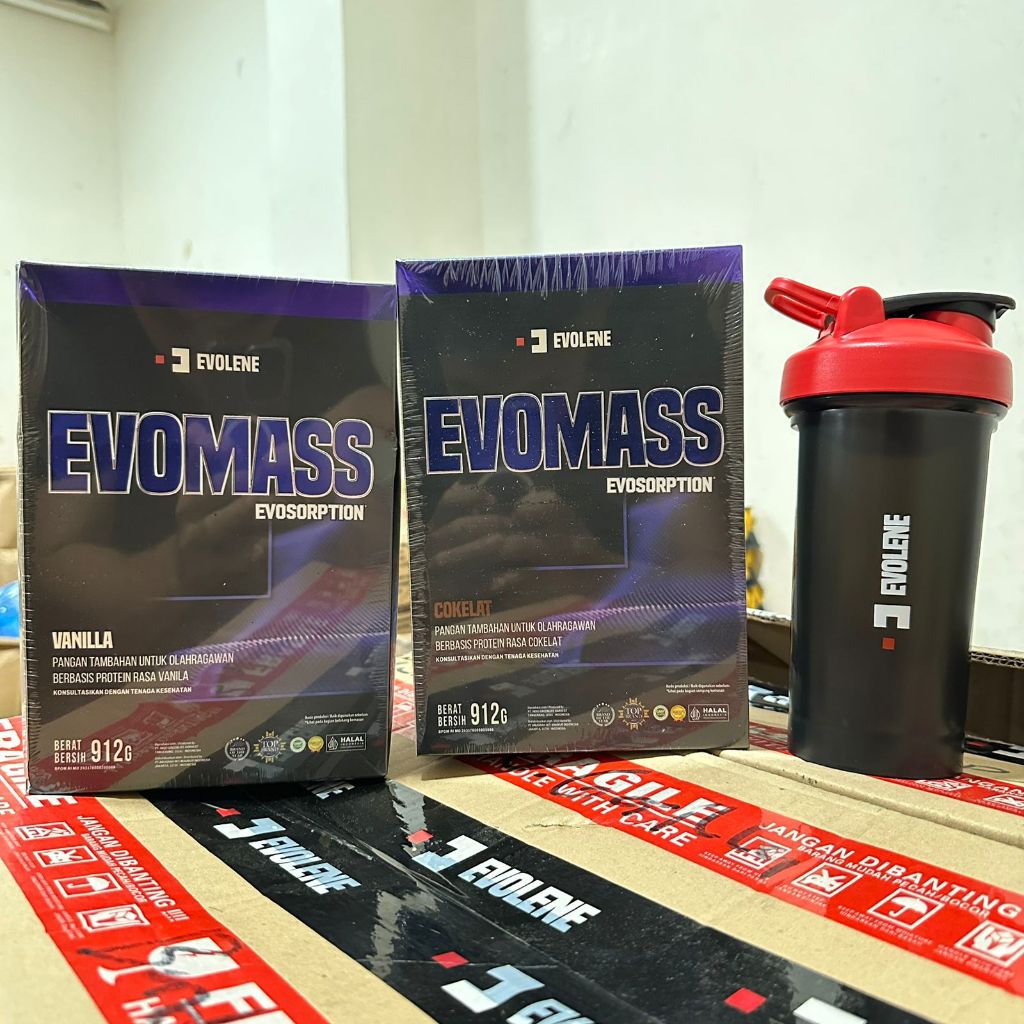 EVOLENE Evomass Evo Mass 2lbs 923 Gram BPOM HALAL MUI Gainer 2lb 1kg Coklat Hazelnut