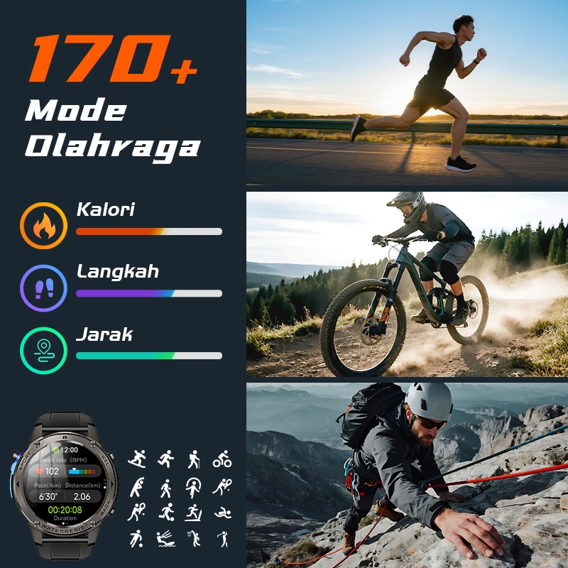 SKMEI Smartwatch Pria DM56 GPS Map 1.43inci Amoled Touch Screen Support Stava Jam Tangan Smartwatch 5ATM Waterproof |Sup