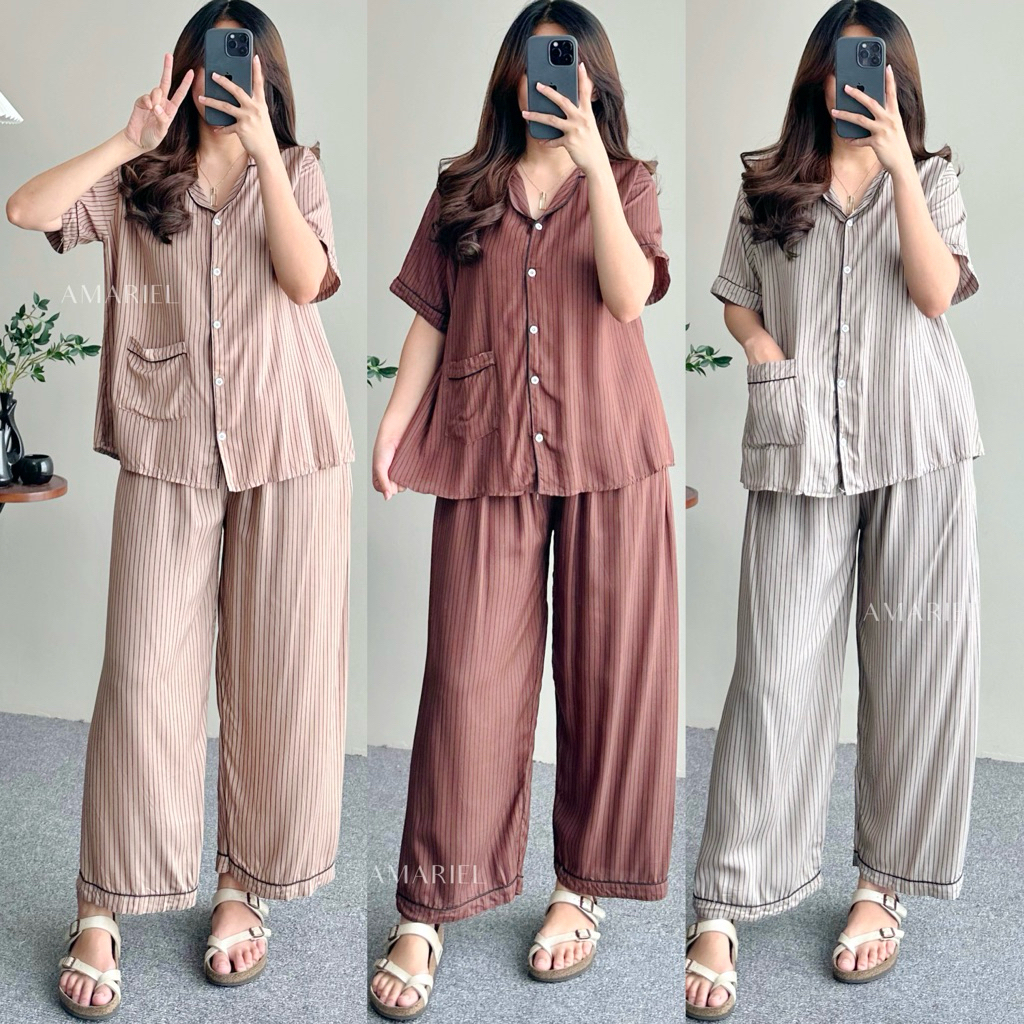Amariel Osha Oneset Piyama Setelan Baju Tidur Rayon Nyaman Bumil Busui Friendly